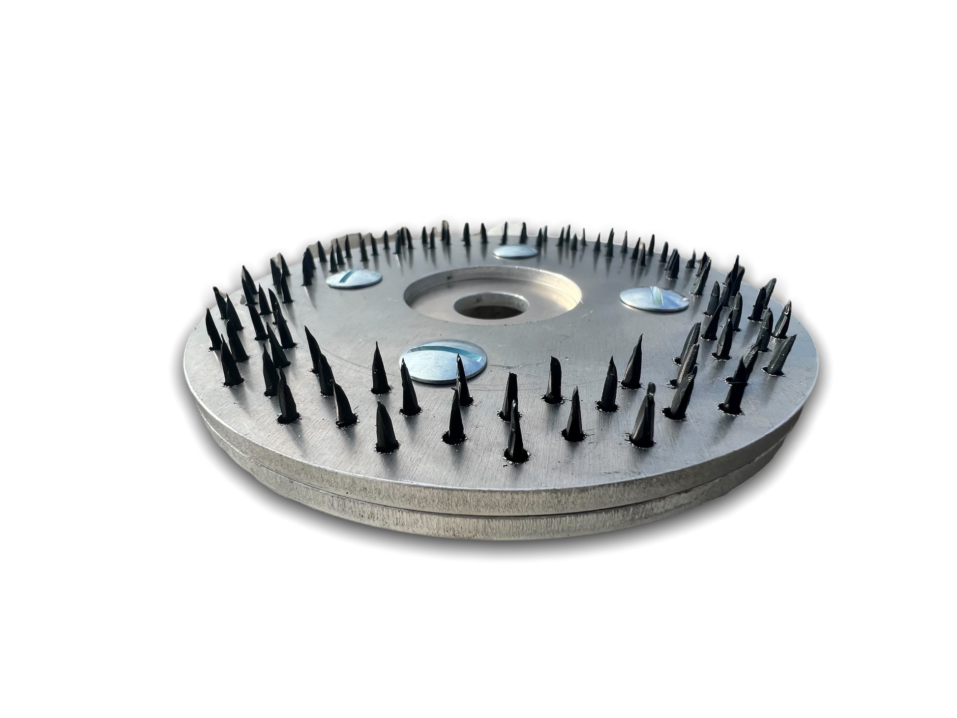 6-inch sandwich design disc designed by racer Willy Decker features (4) 1/4 turn fasteners that allow you to easily REPLACE worn out nail heads with fresh nails that you can buy at your local hardware store.