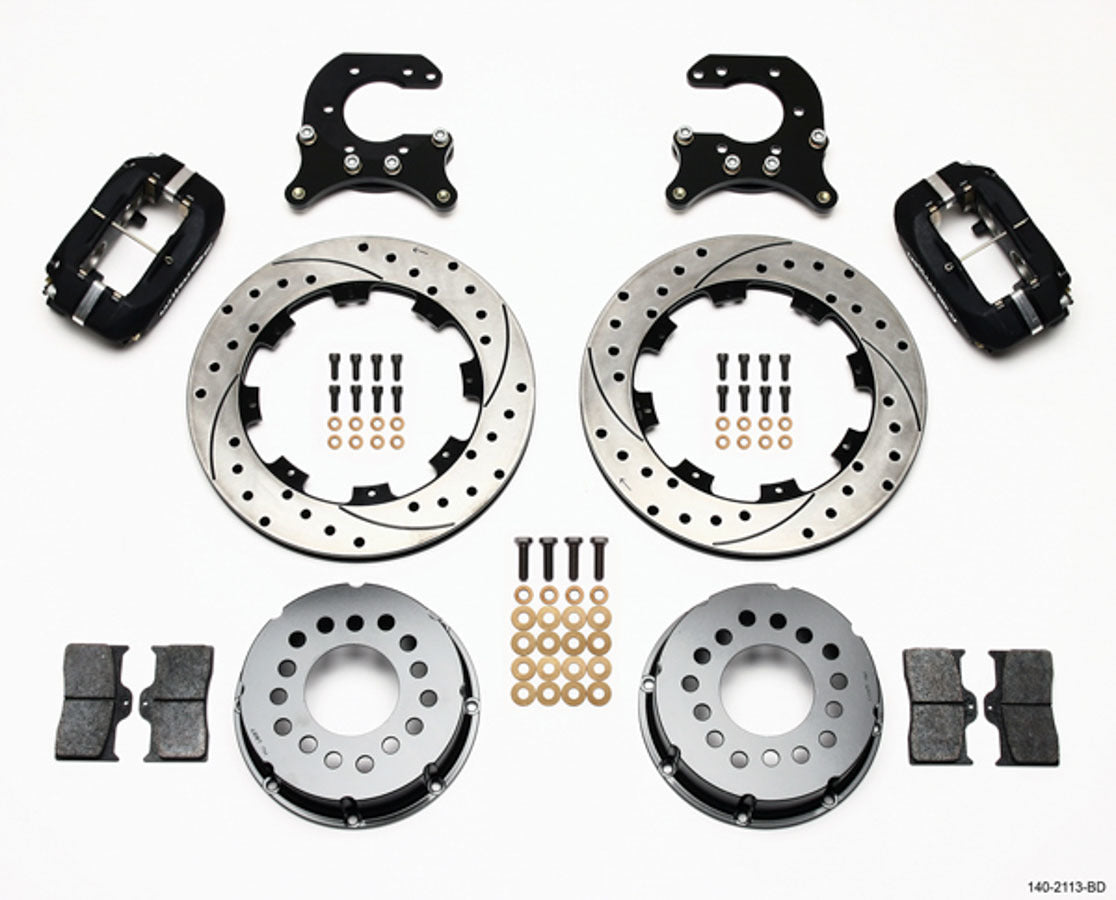 Brake System - Dynalite - Rear - 4 Piston Caliper - 12.000 in Drilled / Slotted Iron Rotor - Offset Hat - Aluminum - Black - Small Ford - Kit